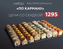 Когда хочется МНОГО Набор «По карману» - это не просто роллы 64 штуки / 1640 г / 8 вкусов Хватит на компанию и на целый вечер Разные вкусы - чтобы каждый нашёл свой Большой объём - чтобы реально наесться И всё это всего 1295 ₽ вместо 1900 Когда хочется вкусно, сытно и без переплаты - это тот самый вариант *Акция может закончиться в любой момент ** В одном заказе может быть неограниченное количество товаров со скидкой