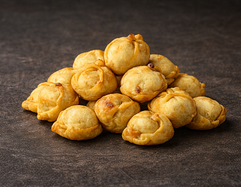 Пельмени с курицей: тесто, фарш из курицы, масло. Отдаются в жареном виде.
